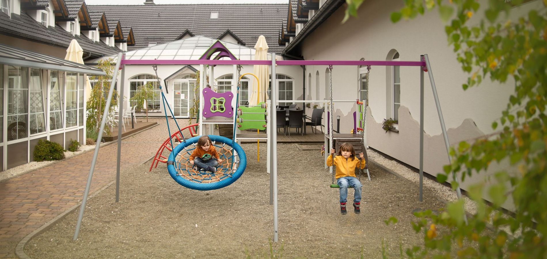W okresie letnim do dyspozycji dzieci jest zewnętrzny plac zabaw na świeżym powietrzu, który znajduje się na terenie zielonym zlokalizowanym tuż obok Ogrodu Letniego.